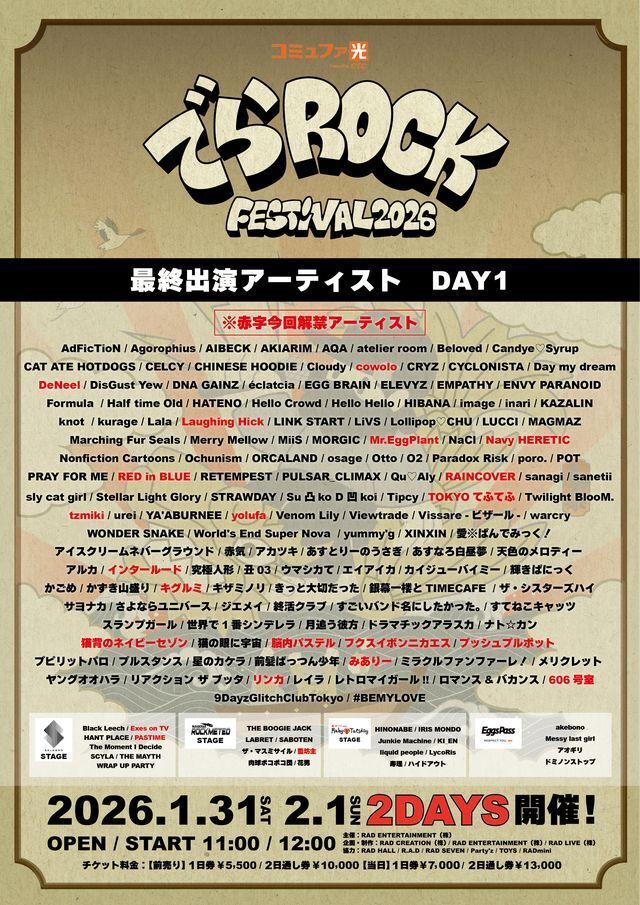 RAD CREATION & RAD ENTERTAINMENT presents「でらロックフェスティバル 2026」名古屋編