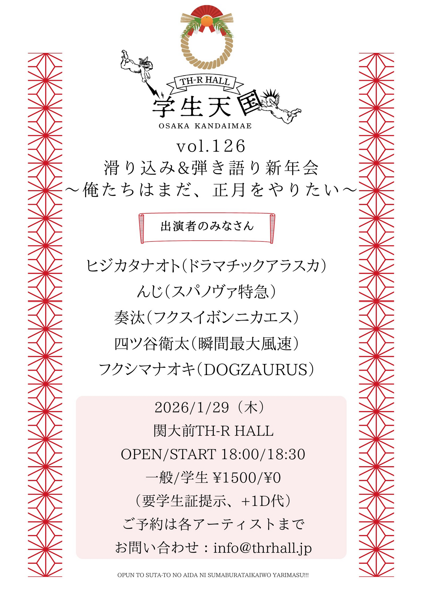 「学生天国 vol.126」滑り込み&弾き語り新年会 〜俺たちは、まだ正月をやりたい〜